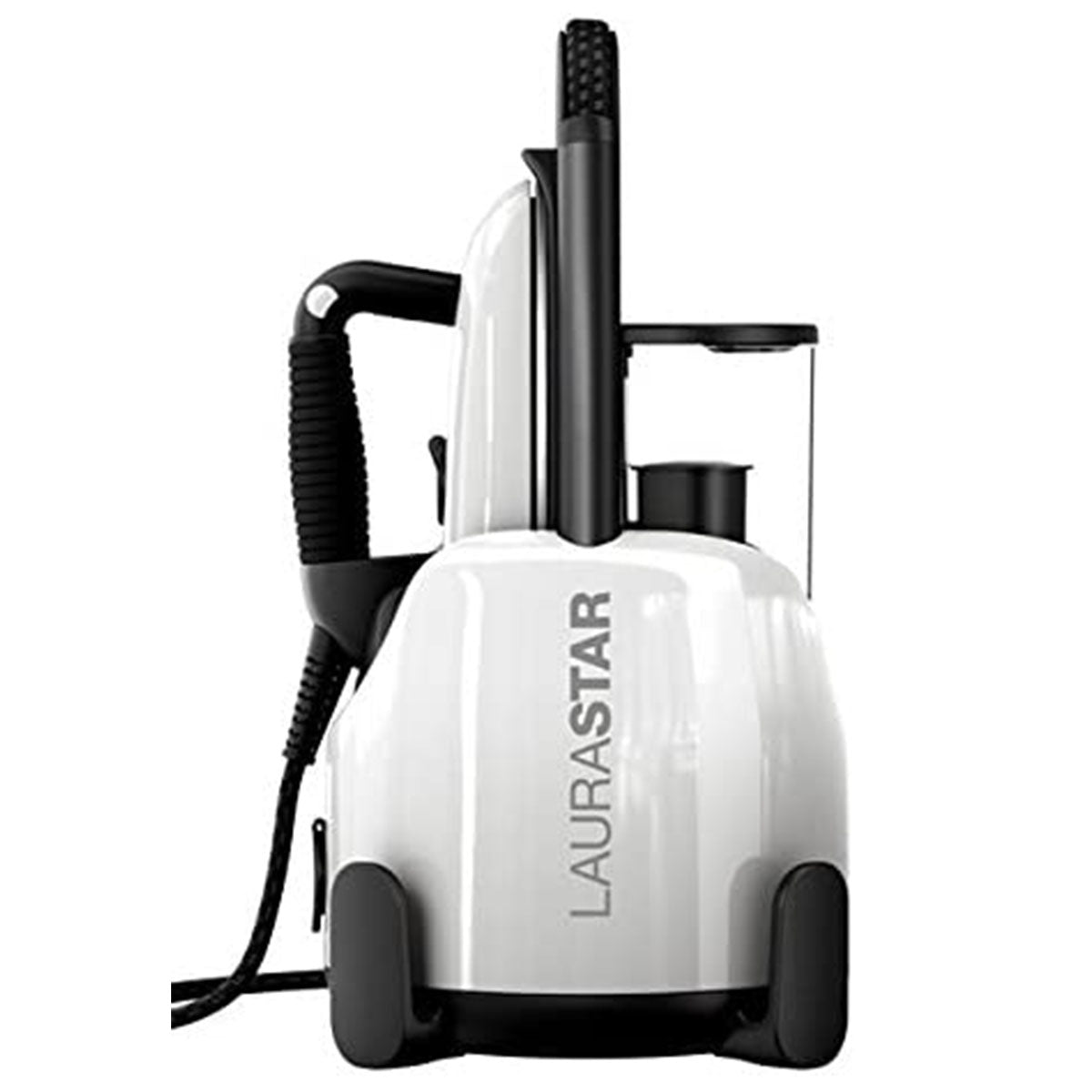 Laurastar Lift Plus Pure White steam generator comes with a special heat-resistant iron mat, a protective soleplate for delicate fabrics, a steam cord holder and an anti-scale water filter cartridge. It has a 2-year guarantee (only for Switzerland and European Union).