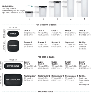 • Modular system: designed for easy stacking and named by height; for example, two Super Oval 1 = one Super Oval 2, and one Super Oval 1 + one Super Oval 3 = one Super Oval 4; same length to stack on Modular Mates® Rectangular storage; same width as regular Ovals; same height as Spaghetti Dispenser